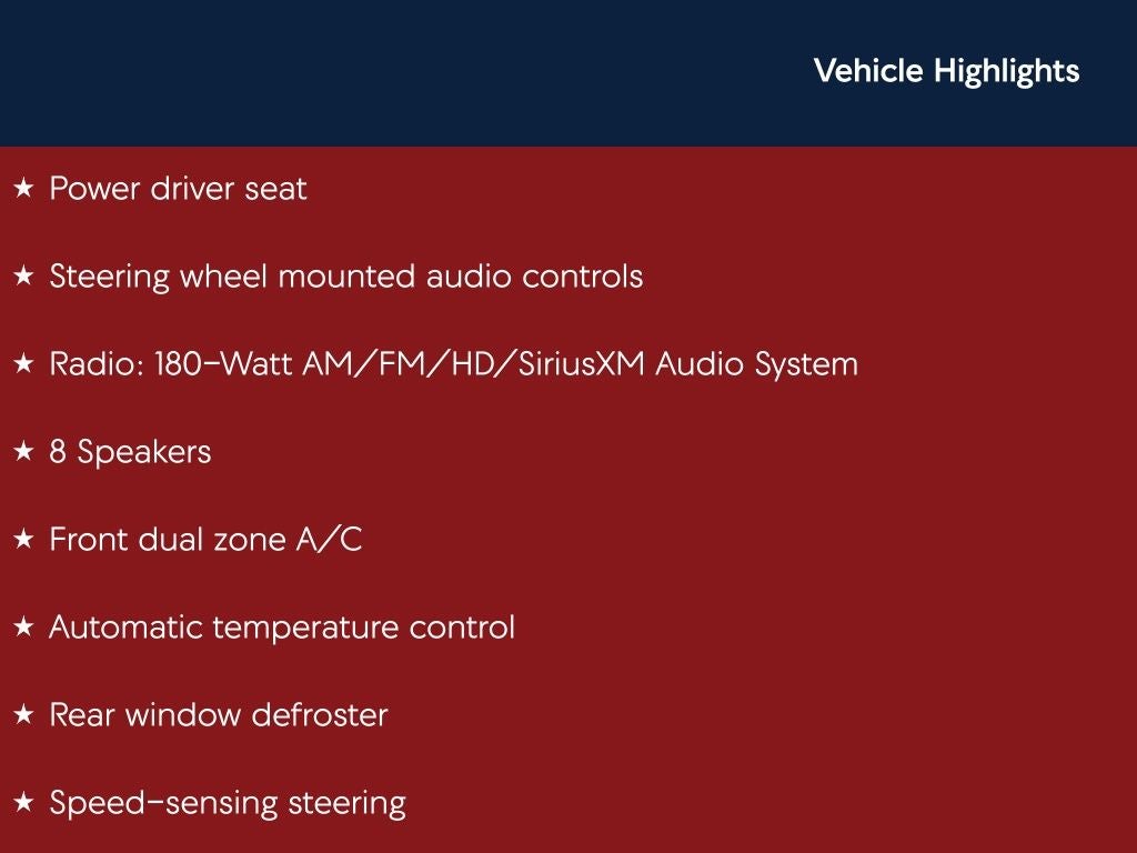 - Radio: 180-Watt AM/FM/HD/SiriusXM Audio System