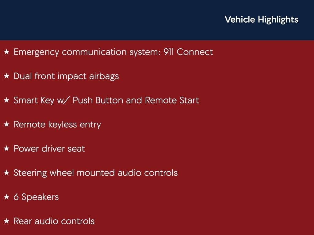 - Emergency SOS Capable 911 Connect vehicle integrated emergency SOS system