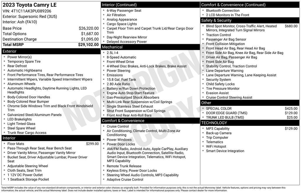 Price excludes Dealer Processing Charge (not required by law):$799