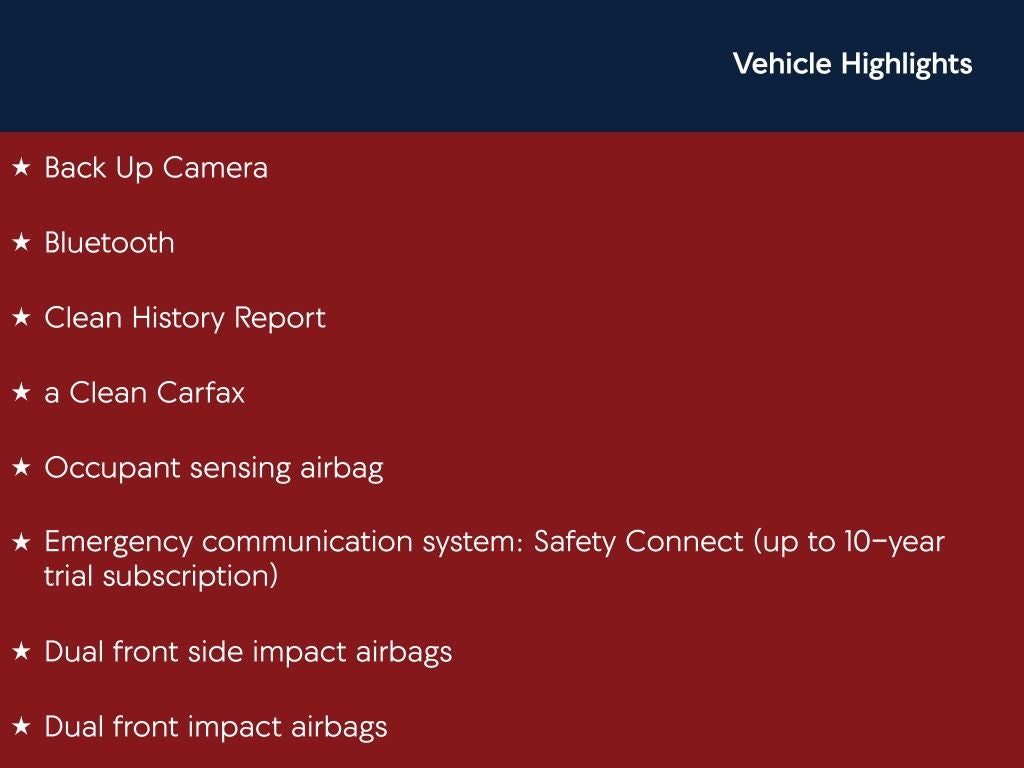 - Emergency SOS Capable Safety Connect (up to 10-year trial subscription) vehicle integrated emergency SOS system