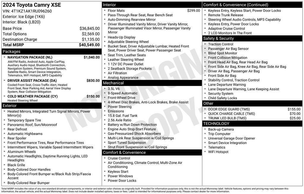 - Vehicle Name: Toyota Camry