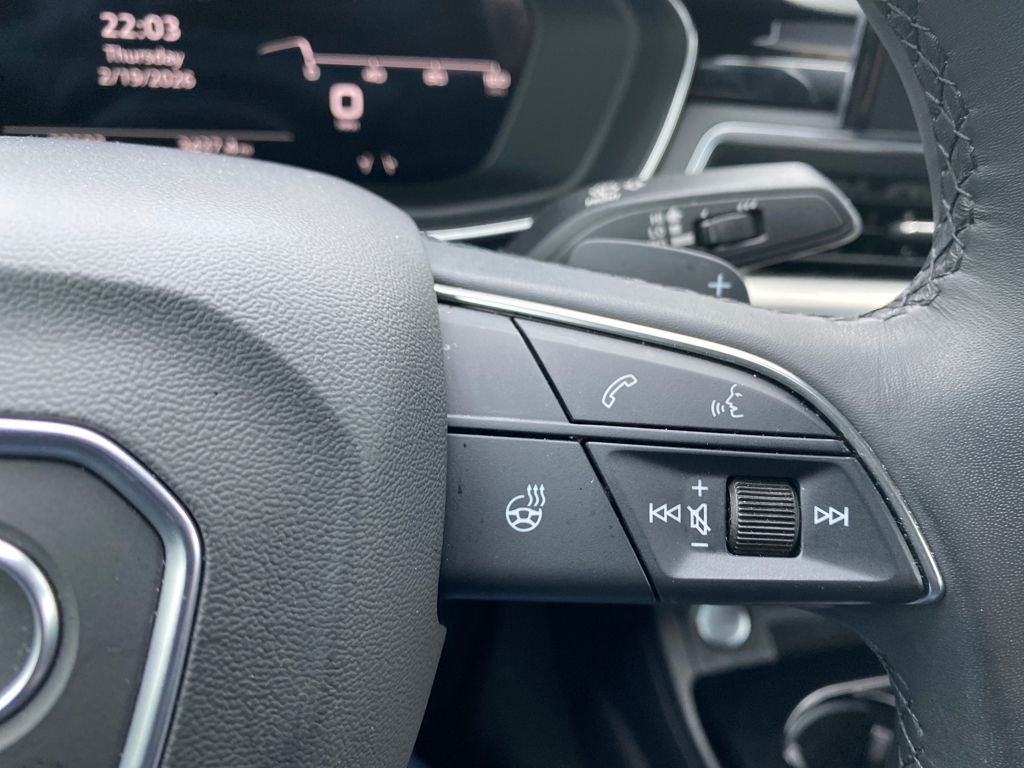 Gray 2025 Audi A5 Sportback 45 S line Premium quattro quattro 7-Speed Automatic S tronic 2.0L 4-Cylinder TFSI FitzWay Select Certified, 10 Speakers, 4-Wheel Disc Brakes, ABS brakes, Active Cruise Control, Alloy wheels, Auto High-beam Headlights, Auto-dimming Rear-View mirror, Automatic temperature control, Brake assist, Compass, Driver door bin, Driver vanity mirror, Electronic Stability Control, Emergency communication system: Audi connect CARE, Exterior Parking Camera Rear, Front anti-roll bar, Front Bucket Seats, Front Center Armrest, Front dual zone A/C, Front fog lights, Genuine wood console insert, Genuine wood door panel insert, Heated door mirrors, Heated front seats, Heated Front Sport Seats, Illuminated entry, Leather Shift Knob, Leather steering wheel, Low tire pressure warning, Panic alarm, Passenger door bin, Power door mirrors, Power driver seat, Power Liftgate, Power moonroof, Power passenger seat, Power steering, Power windows, Radio data system, Radio: Audi Sound System, Rain sensing wipers, Rear air conditioning, Rear window defroster, Remote keyless entry, Speed-Sensitive Wipers, Split folding rear seat, Steering wheel mounted audio controls, Tachometer, Tilt steering wheel, Traction control, Trip computer, Turn signal indicator mirrors, Wheels: 18 5-Double-Spoke Design.