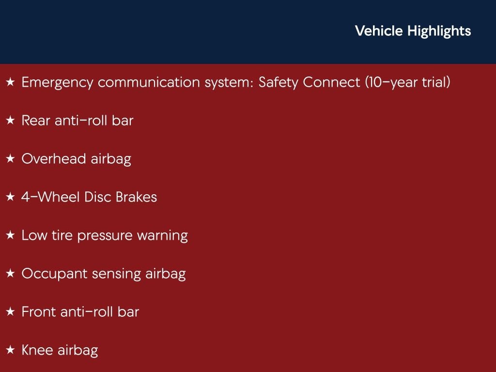 - Emergency SOS Capable Safety Connect (10-year trial) vehicle integrated emergency SOS system